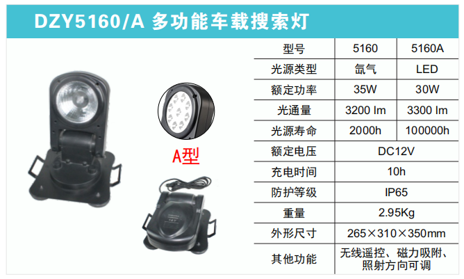 • 使用灵活:灯具底部设有强磁吸盘,可吸附于车顶或船顶;任何车型、船舱上,也可安装在塔台、并架及其它机电设备上固定照明;灯具以水平360度、仰俯角1301度范围任意调节。